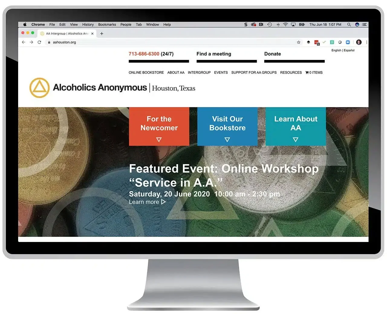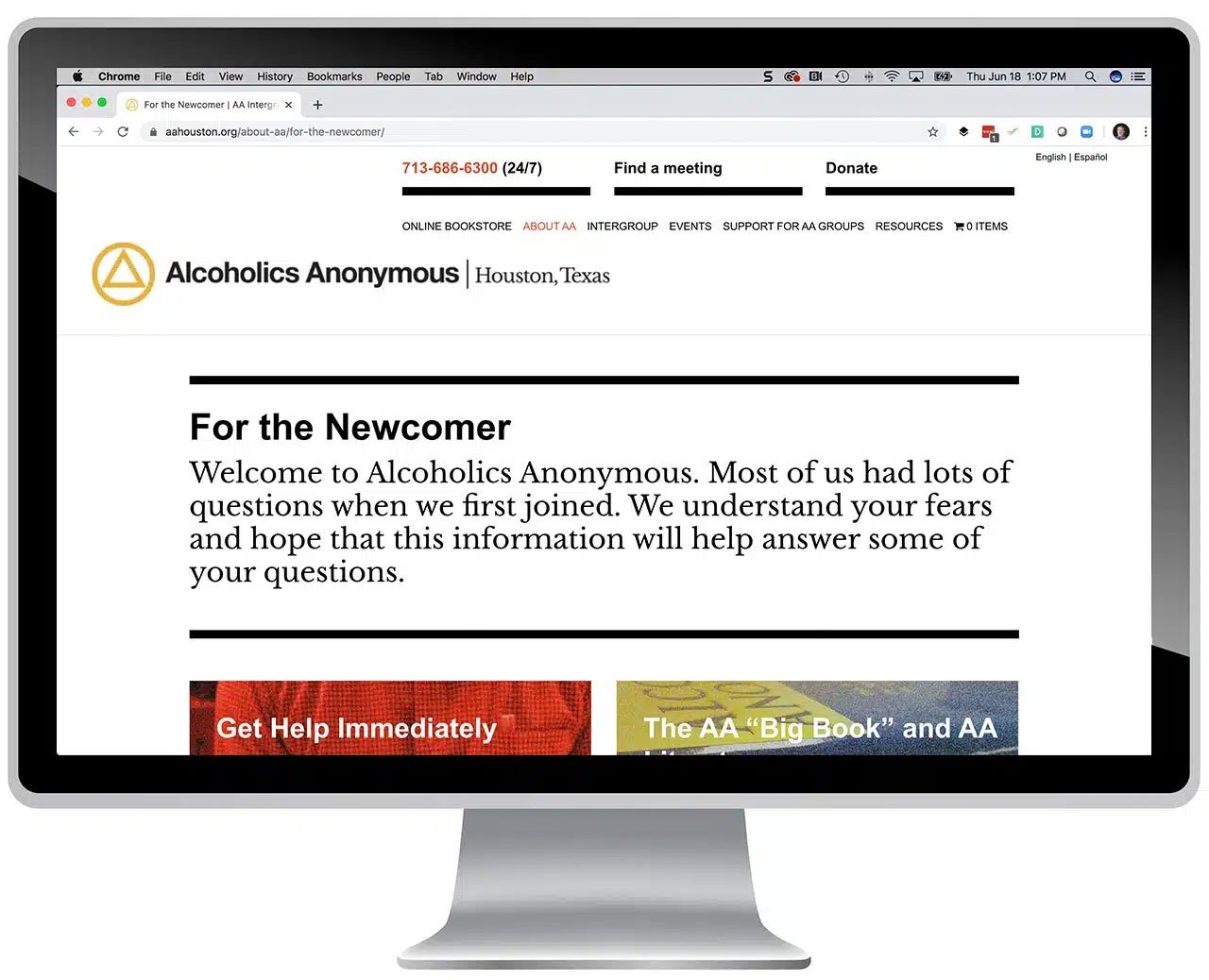 Houston has one of the largest local AA communities in the world. Its website welcomes newcomers, provides a large amount of background information, and includes an interactive meeting finder.